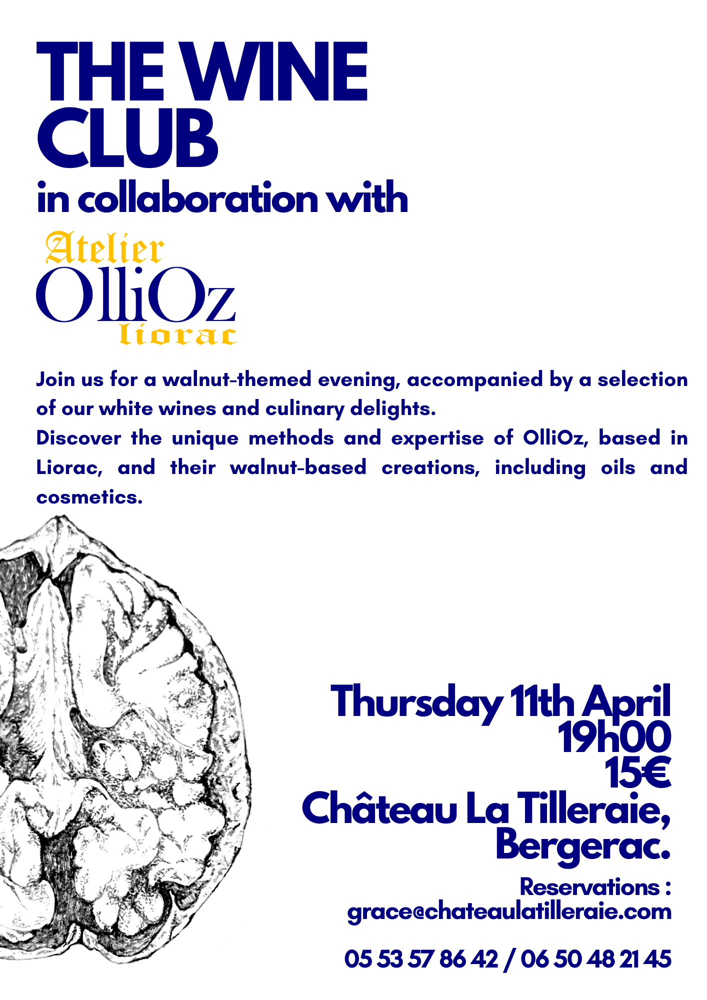 Our collaborators, Chateau la Tilleraie (where we will be holding our Christmas Fair) have their next Wine Club on Thursday 11th April. 15€ pp