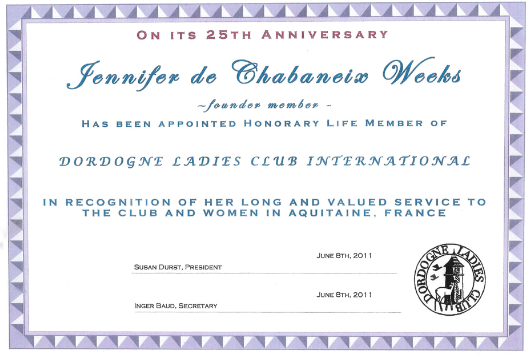 10 ½ years ago a friend invited me to a luncheon at the Bordeaux Women’s Club. All different nationalities were chatting round the tables and I rather fancied this and thought to myself “Why not in the Dordogne ?”. My friend was very enthusiastic.